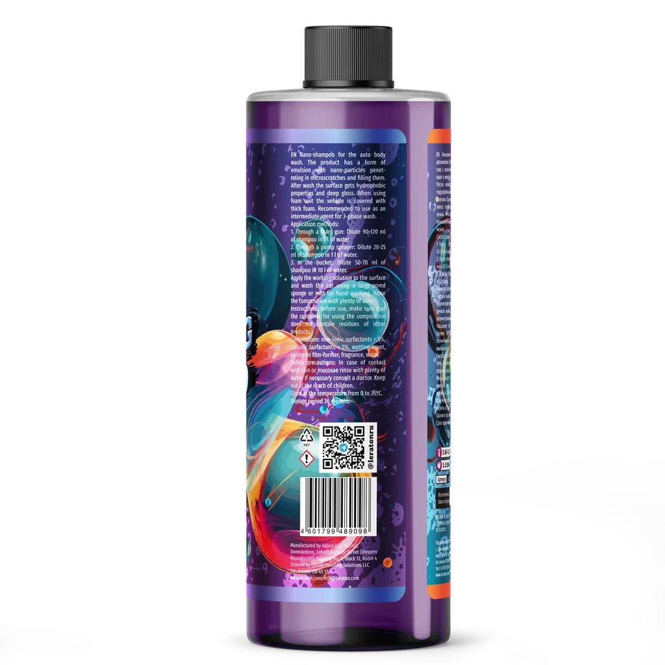 Способы применения: Развести водой в соотношении 1:10. Наносить на чистый кузов автомобиля при помощи пенокомплекта или пневмораспылителя. Растереть пену по всей поверхности при помощи губки или варежки для ручной мойки. Смыть остатки пены и насухо вытереть микрофибровым полотенцем.