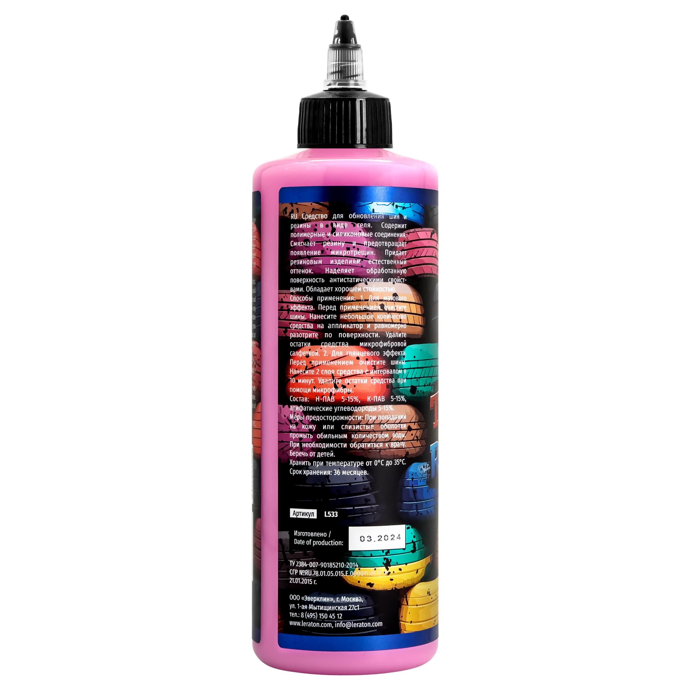 Средство для обновления шин и резины в виде крема. Содержит полимерные и силиконовые соединения. Смягчает резину и предотвращает появление микротрещин. Придает резиновым изделиям естественный оттенок. Наделяет обработанную поверхность антистатическими свойствами. Обладает хорошей стойкостью.