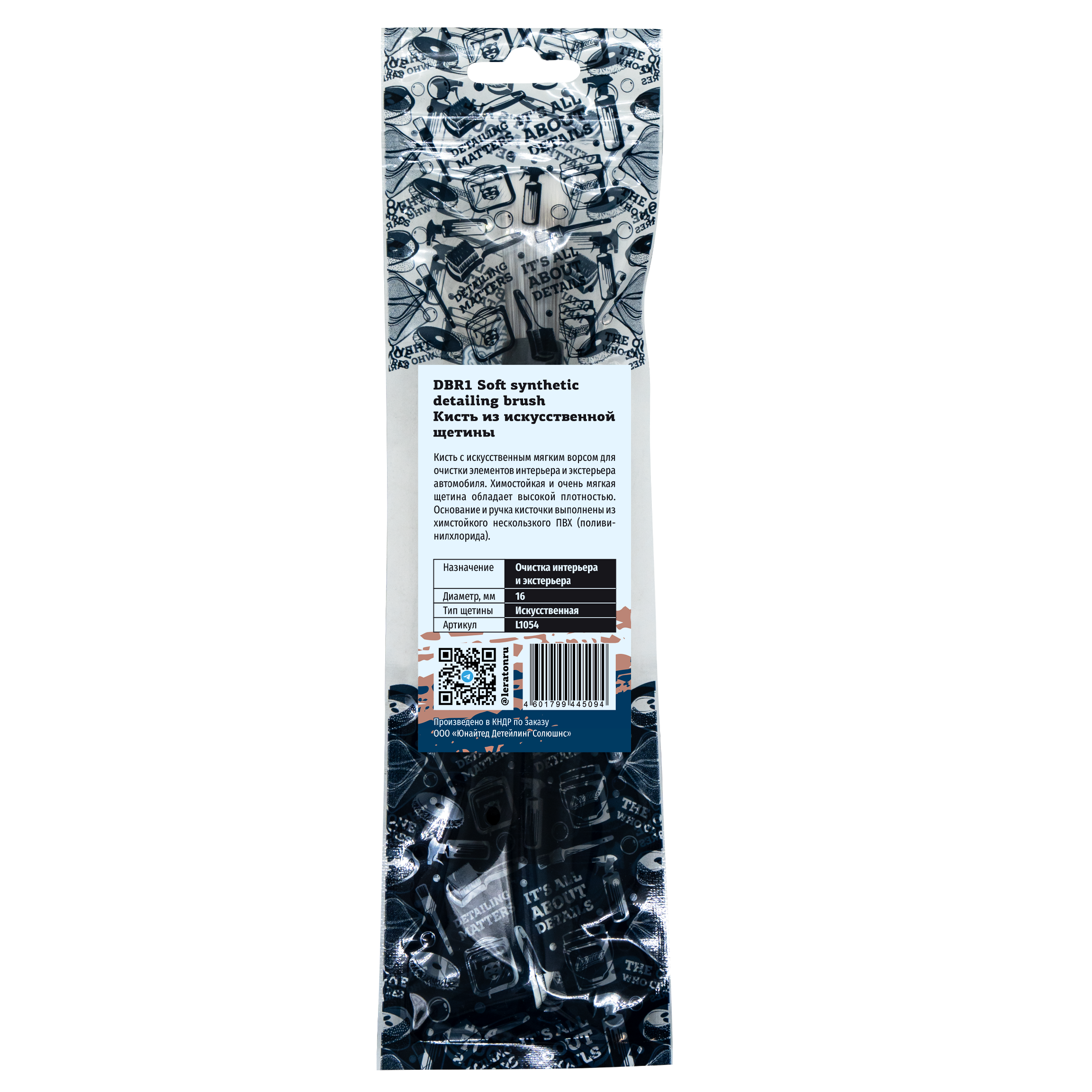Пластиковая кисть диаметром 16 мм с искусственным мягким ворсом. Основание и ручка кисточки выполнены из химстойкого нескользкого ПВХ (поливинилхлорида). Устойчивый к химии, очень мягкий ворс обладает высокой плотностью, поэтому кисть может использоваться как при детейлинге интерьера, так и экстерьера.