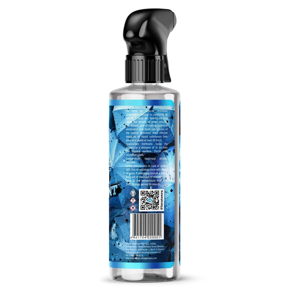 Применяется для обеспечения максимально комфортного вождения автомобиля в условиях дождя, летящей из-под колес других автомобилей грязи, снега и т.п. Тончайший слой покрытия, нанесенный на ветровое и боковые стекла автомобиля, способствует более эффективному отталкиванию жидких субстанций от стекла на скорости выше 60 км/ч.