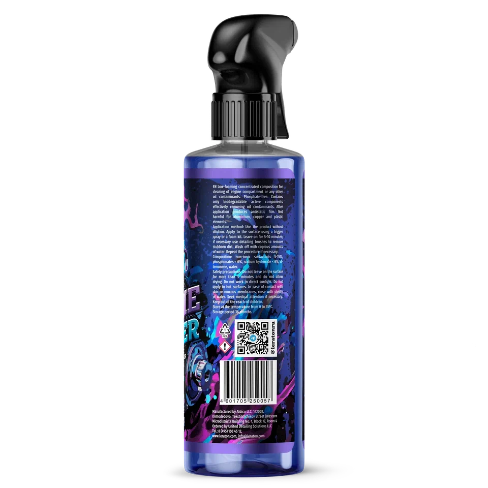- Для 1л, 3,8 л и 20 л: Развести водой в соотношении 1:3-5. Нанести на поверхность с помощью триггерного распылителя или используя пенокомплект. Оставить на 5-10 минут, при необходимости использовать кисти для детейлинга, чтобы удалить стойкие загрязнения. Смыть обильным количеством воды. При необходимости повторить процедуру.